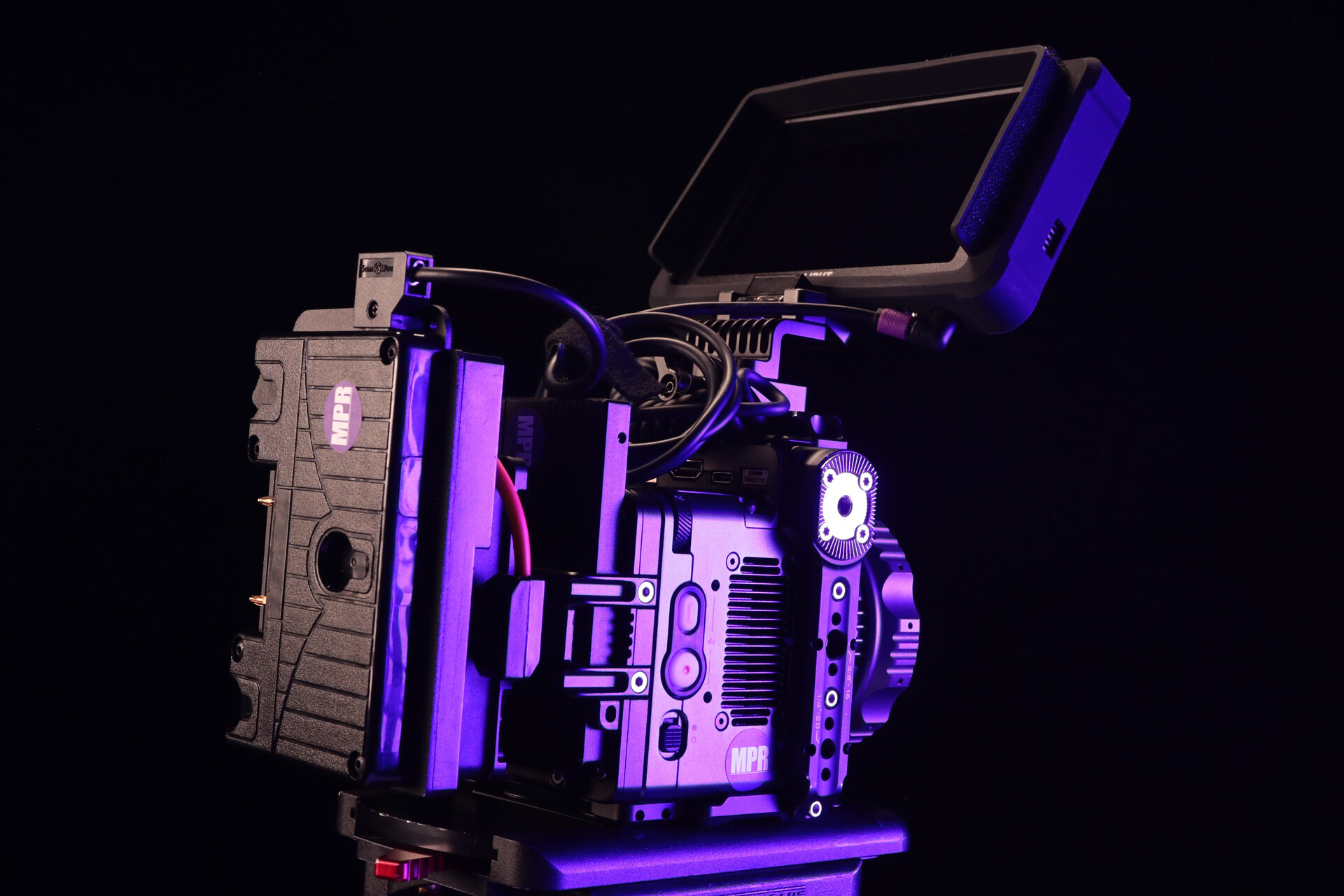 Power the camera using a separately available power source using the included 4-pin Molex to D-Tap cable with a power plate or battery. Numerous accessories can be added, such as handles, cheese plates, and battery mounts, using the 1/4"-20 and M3 threads around the camera body.