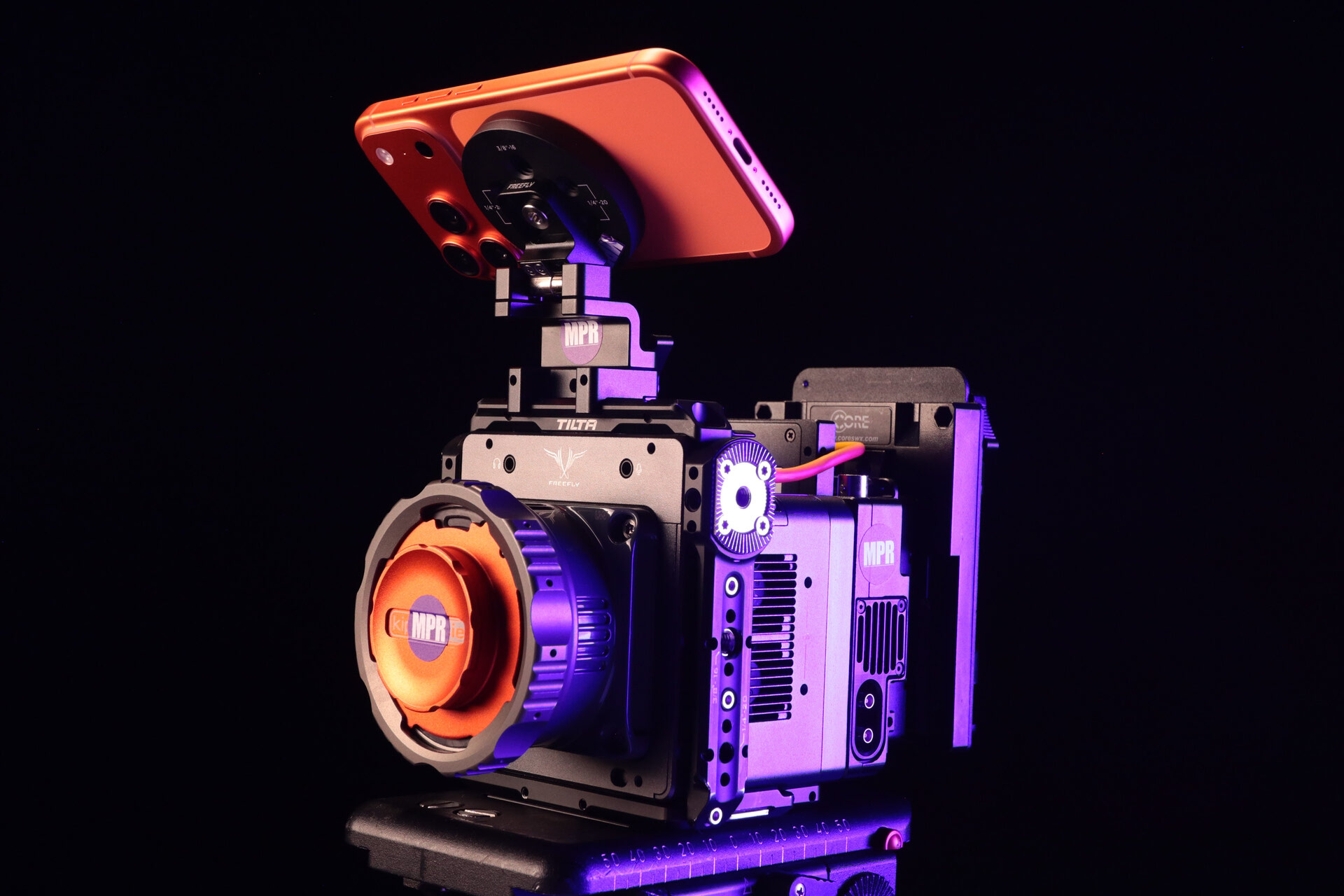The camera captures 10-bit ProRes format video onto the internal 4TB M.2 NVMe SSD, which can capture up to 36 minutes of video in 5K600 mode and up to 45 minutes of video in 4K800 mode, and the drive is upgradeable. You can control the camera via Wi-Fi via an iOS app workflow, and there is also a 6-pin GPIO port to remotely control start/stop/sync functions. The HDMI output allows you to preview your image using a 1080p monitor.