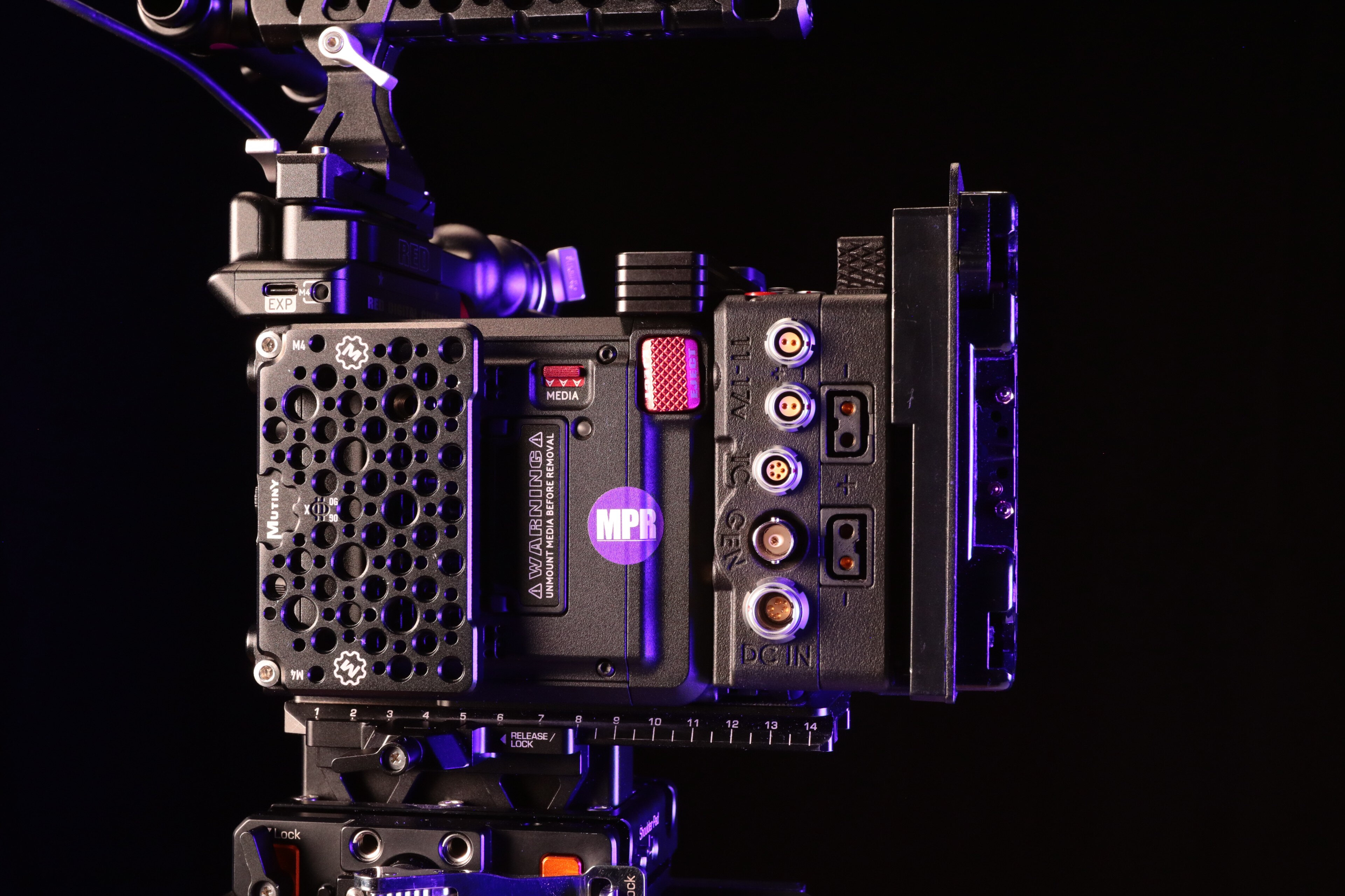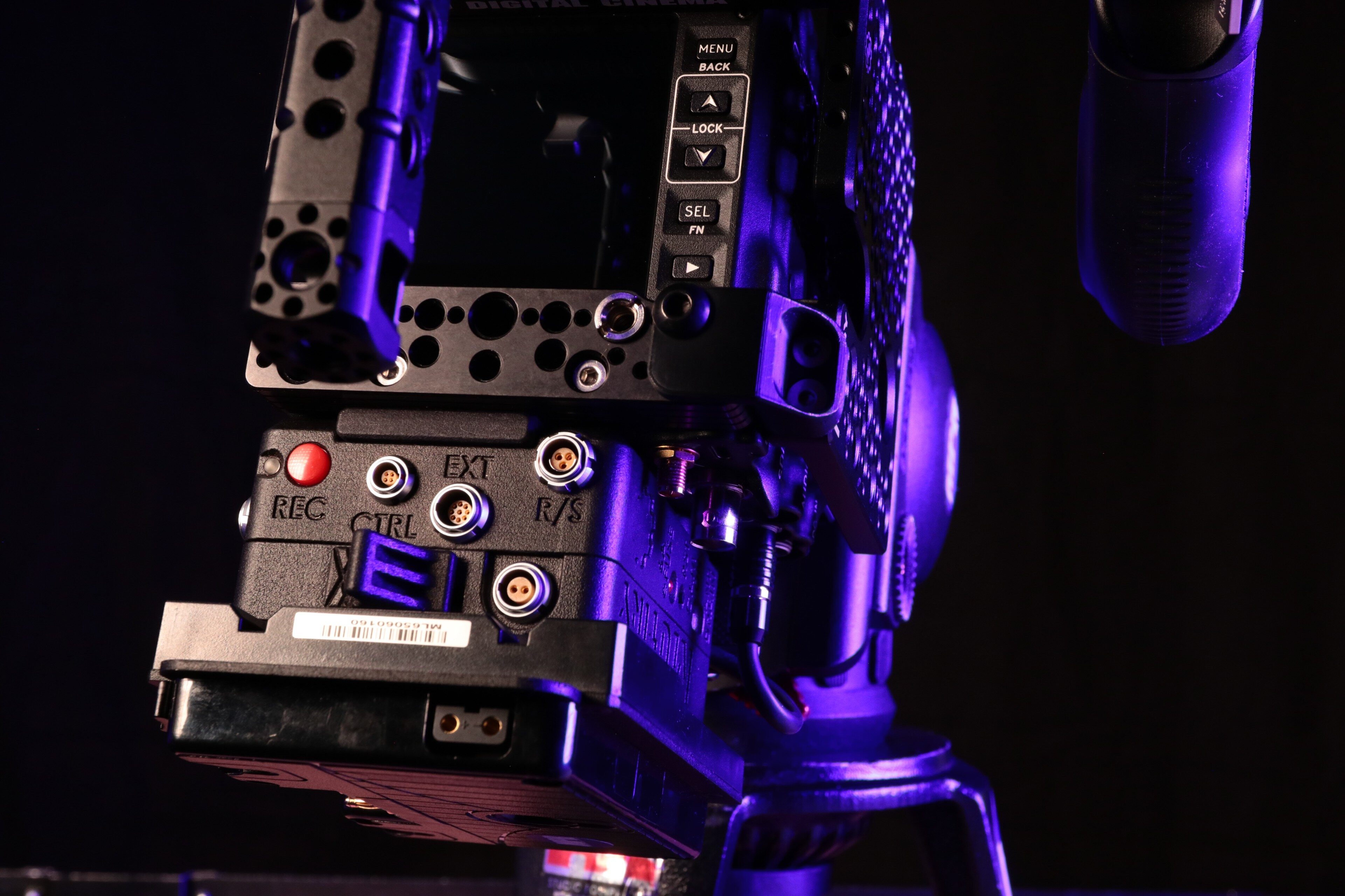 The KOMODO-X 6K camera melds select DSMC3 features with the notably ultracompact KOMODO form. The KOMODO-X is compatible with the upcoming PRO I/O Module for auxiliary power and full-size Gold and V-mount battery use and it has a built-in micro plate that enables the direct mounting use of Micro V-mount batteries without the need for an adapter. It also incorporates a full-size, 6-pin 11-17VDC power input.